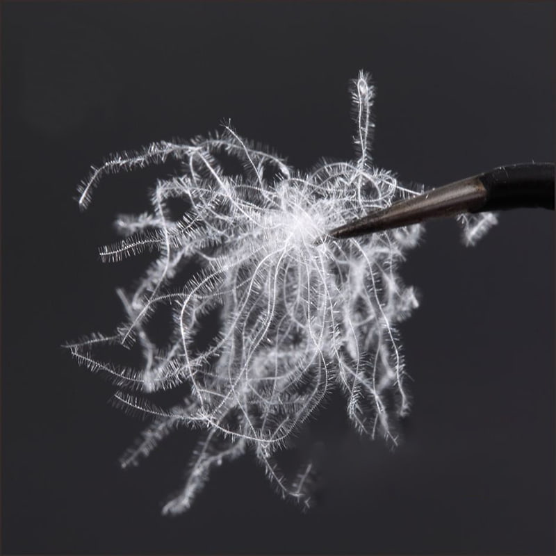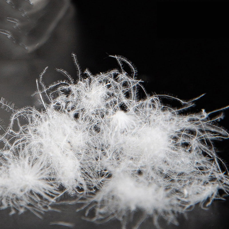 คัดสรรจากพื้นที่เป็ดตามธรรมชาติ เช่น ส่วนท้อง คอ และปีก ขนเป็ดมีรูปร่างเป็นกกอย่างดี และให้ความรู้สึกนุ่มฟูราวกับก้อนเมฆ เสริมด้วยขนนกที่เป็นขุยตามสัดส่วนอย่างแม่นยำ ทำให้เกิดเป็นเมทริกซ์ล็อคอุณหภูมิ 2 ชั้น เนื่องจากเป็นเส้นใยธรรมชาติจากสัตว์ โครงสร้างคล้ายลูกบอลของดาวน์จึงถูกปกคลุมอย่างหนาแน่นด้วยรูพรุนขนาดเล็กรูปสามเหลี่ยมหลายร้อยล้านรู ซึ่งสร้างวงจรการหายใจที่ชาญฉลาด เมื่ออุณหภูมิของร่างกายสูงขึ้น เส้นใยจะยืดออกตามธรรมชาติเพื่อระบายความร้อน และเมื่อสภาพแวดล้อมเย็นลง เส้นใยก็จะหดตัวแน่นเพื่อกักเก็บความอบอุ่น ในขณะที่รีไซเคิลความร้อนที่กระจายโดยร่างกายมนุษย์ได้อย่างมีประสิทธิภาพ แต่ยังแยกการบุกรุกของอากาศเย็นจากโลกภายนอก และได้รับการปกป้องอุณหภูมิคงที่ตลอด 24 ชั่วโมง เบาและมองไม่เห็น เหมาะกับร่างกายราวกับผิวหนังชั้นที่สอง ทำให้อบอุ่นและสบายแบบไร้รอยต่อ