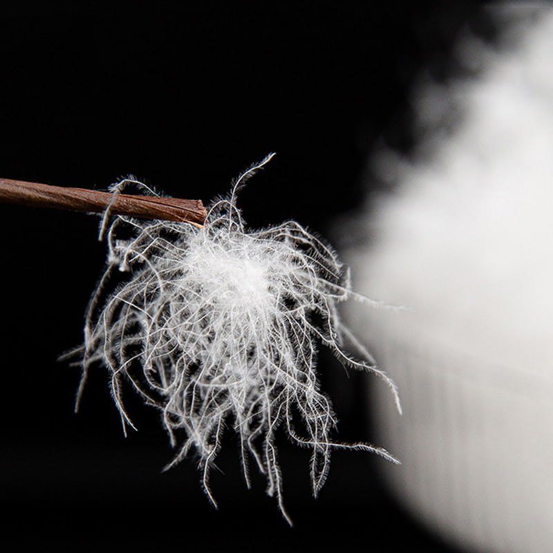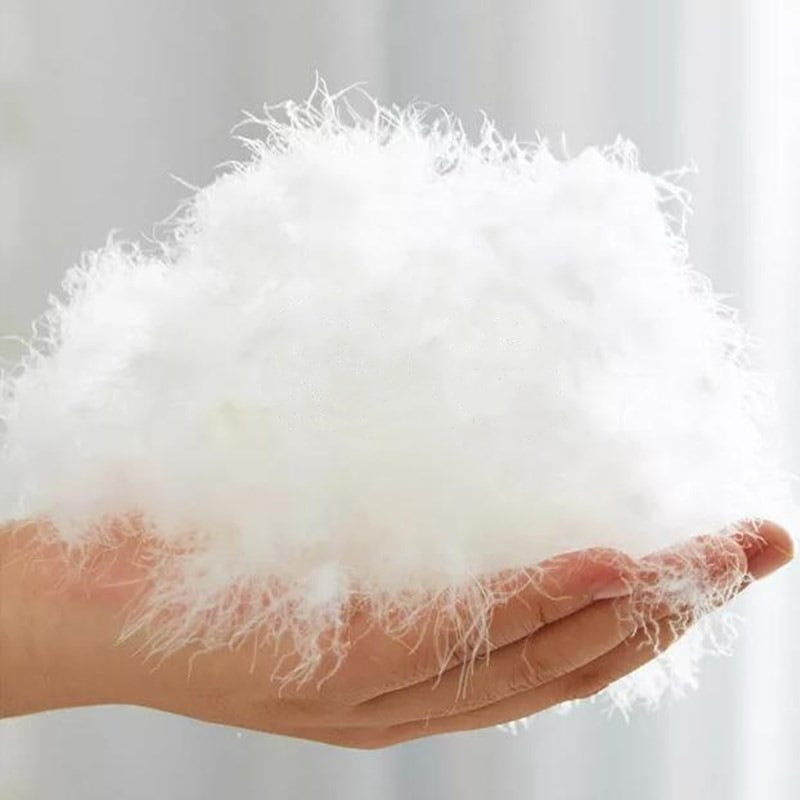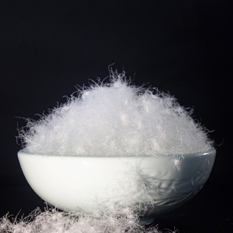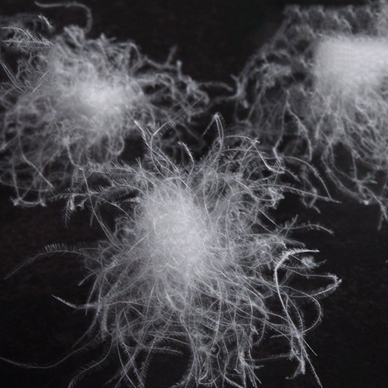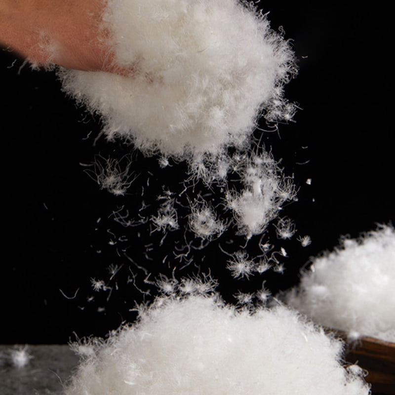 ที่ได้มาจากส่วนที่ทนความเย็นตามธรรมชาติของห่านขาวหายาก - บริเวณส่วนท้อง คอ และปีกด้านล่าง โครงสร้างขนอ่อนคล้ายกกอันเป็นเอกลักษณ์และขนที่เป็นขุยทำให้เกิดส่วนผสมของอัตราส่วนทองคำ ในฐานะตัวแทนที่โดดเด่นของเส้นใยโปรตีนจากสัตว์ระดับไฮเอนด์ เส้นใยขนห่านแต่ละเส้นจะมีรูปร่างเป็นทรงกลมสามมิติ โดยมีเมทริกซ์รูพรุนสามเหลี่ยมขนาดนาโนนับสิบล้านกระจายอยู่อย่างหนาแน่นบนพื้นผิว โครงสร้างรูพรุนที่แม่นยำเหล่านี้เปรียบเสมือนวาล์วควบคุมอุณหภูมิระดับไมโคร ซึ่งสามารถตรวจจับความแตกต่างของอุณหภูมิโดยรอบได้อย่างชาญฉลาด และปรับช่องว่างของเส้นใยโดยอัตโนมัติ เมื่อพลังงานความร้อนของร่างกายถูกปล่อยออกมา รูขุมขนจะก่อตัวเป็นชั้นล็อคอุณหภูมิสามมิติผ่านการดูดซับทางกายภาพ และในขณะเดียวกันก็สร้างตาข่ายป้องกันฉนวนความร้อนหลายมิติ ซึ่งปิดกั้นเส้นทางการเจาะสามมิติของอากาศเย็นได้อย่างมีประสิทธิภาพ สร้างสภาพแวดล้อมปากน้ำที่มีอุณหภูมิคงที่ทุกสภาพอากาศสำหรับผู้สวมใส่